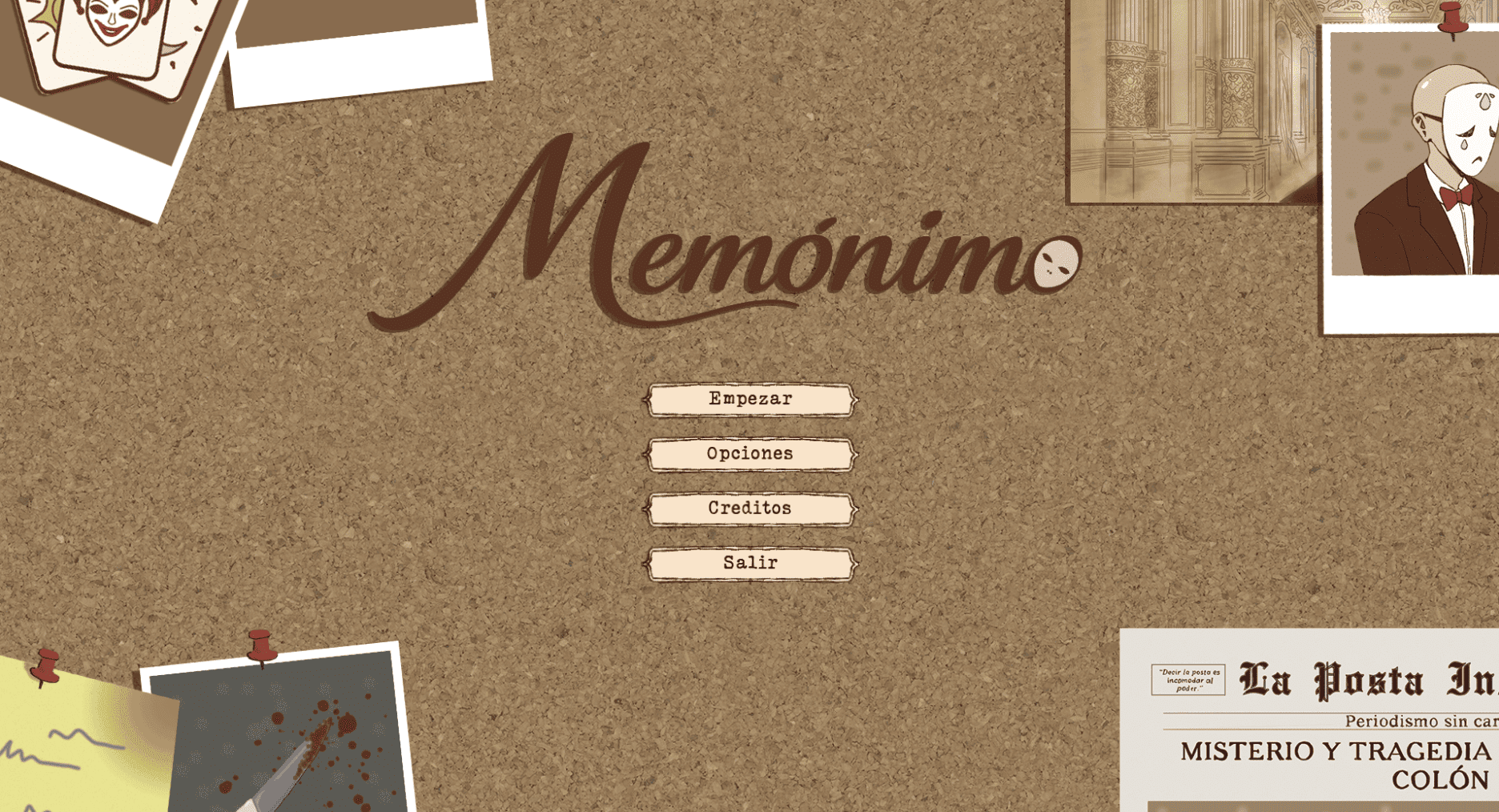Memónimo es un juego estilo novela visual donde deberás interrogar a Testigo para atrapar al culpable de un crimen. En este caso, ayuda a Detective a identificar al asesino de Osvaldo González, quien se esconde entre los invitados usando una máscara veneciana.